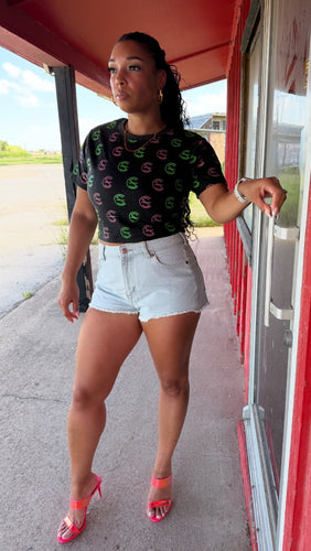Adult Self Care by SC Women's Proficient Crop T-shirts (Pink and Green)